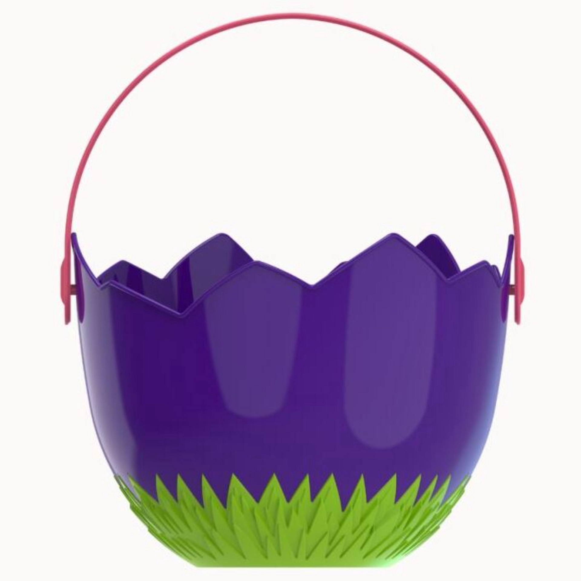 The perfect basket to carry all of your Easter treats. This fun cracked egg-shaped basket is lightweight with a sturdy carry handle that folds down. The grass texture added at the bottom of the basket…