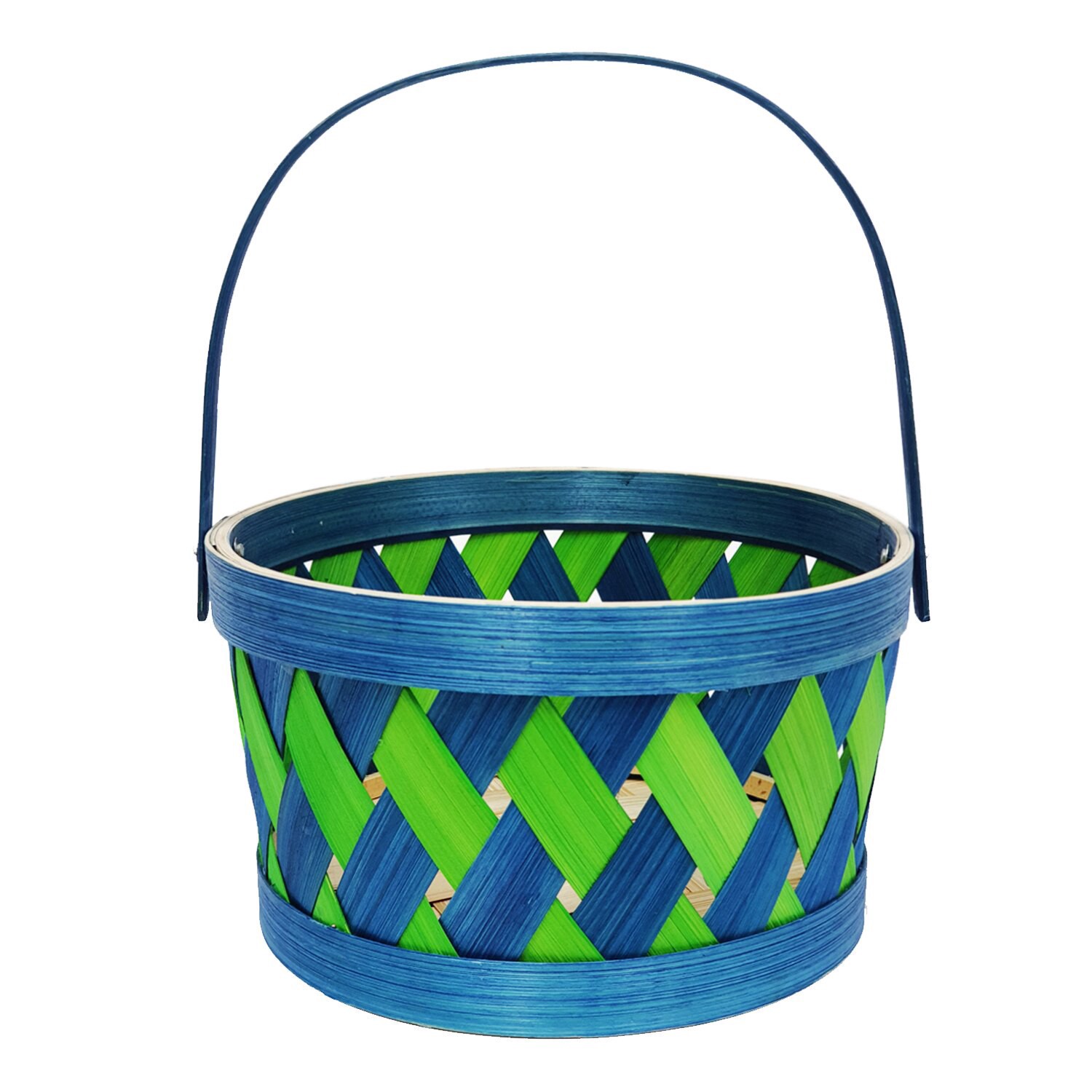 Cottondale Rnd Bamboo Hdle Basket--Green/Blue