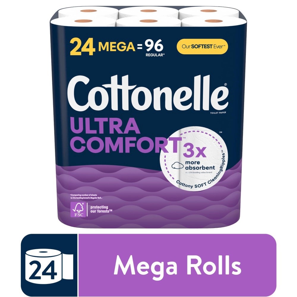 Cottonelle Ultra Comfort Toilet Paper, Strong Toilet Tissue, 24 Mega Rolls (24 Mega Rolls = 96 Regular Rolls), 244 Sheets Per Roll