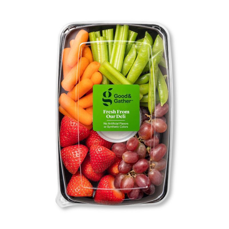Whether for an afternoon picnic date or for a small evening get-together, a Small Fruit and Vegetable Snacking Tray from Good & Gather™ makes a great pick. This small veggie and fruit tray comes with …