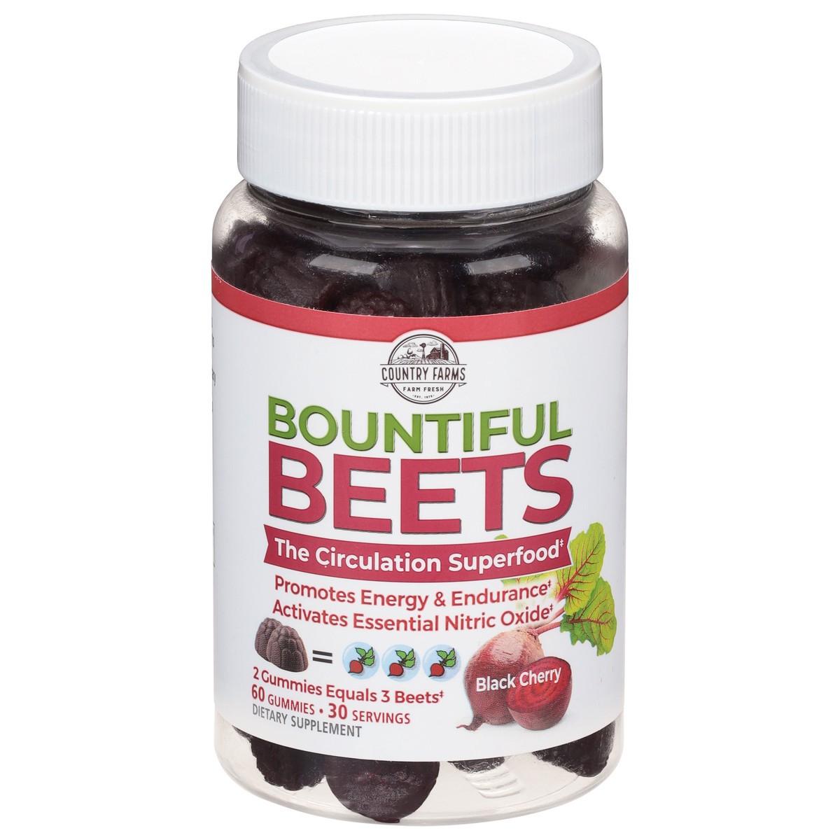 Promotes energy & endurance. Activates essential nitric oxide. Country Farms Bountiful Beets brings the power of pure beets to life in a convenient gummy. To supercharge your intake of dietary nitrateā¦