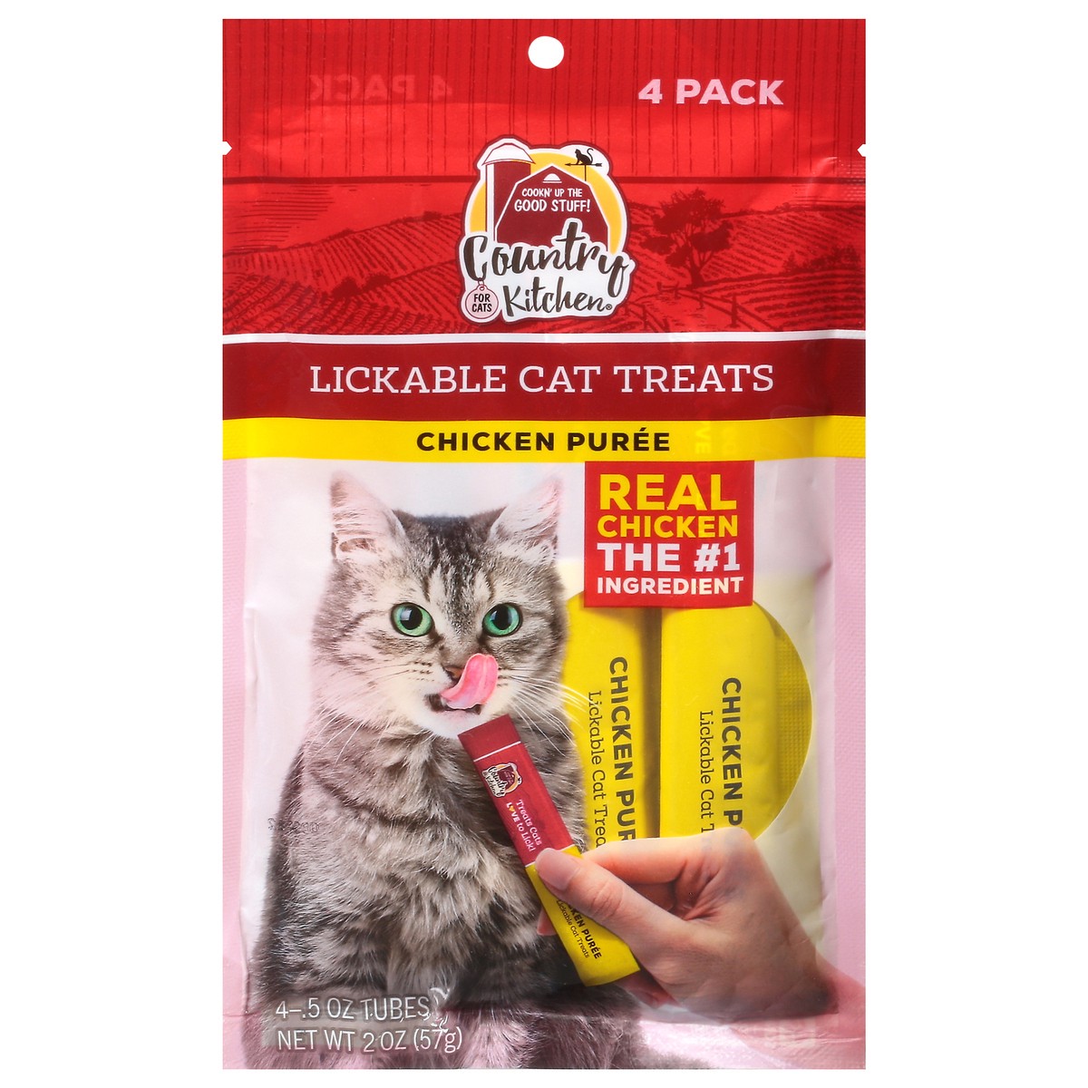 slide 4 of 9, Country Kitchen Chicken Puree Lickable Cat Treats, 4-Pack, 0.5 oz