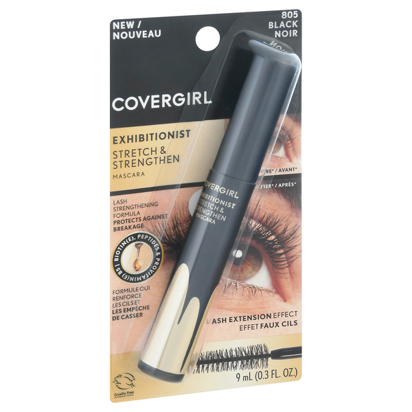 slide 1 of 1, Covergirl Mascara, Black 805, Exhibitionist, Stretch & Strengthen, 9 ml
