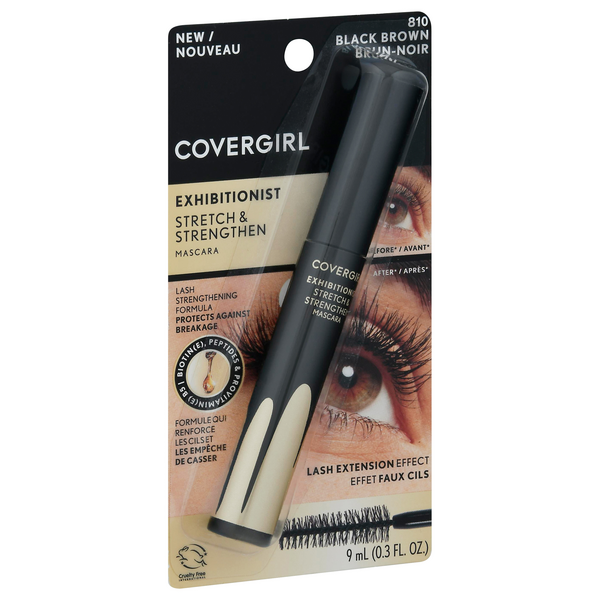 slide 1 of 1, Covergirl Mascara, Exhibitionist, Stretch & Strengthen, Black Brown 810, 0.3 fl oz