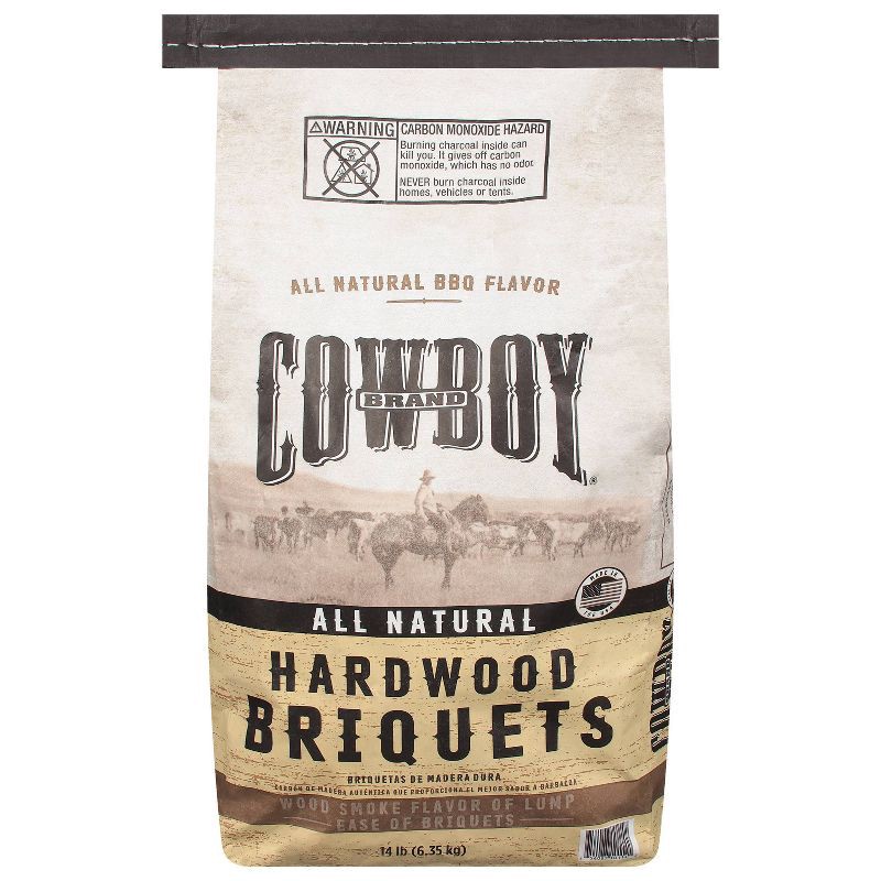 Cowboy 14lb Hardwood Briquets: Ideal for Charcoal Grills, Patio Solid Fuel, 14.65lb Product Weight