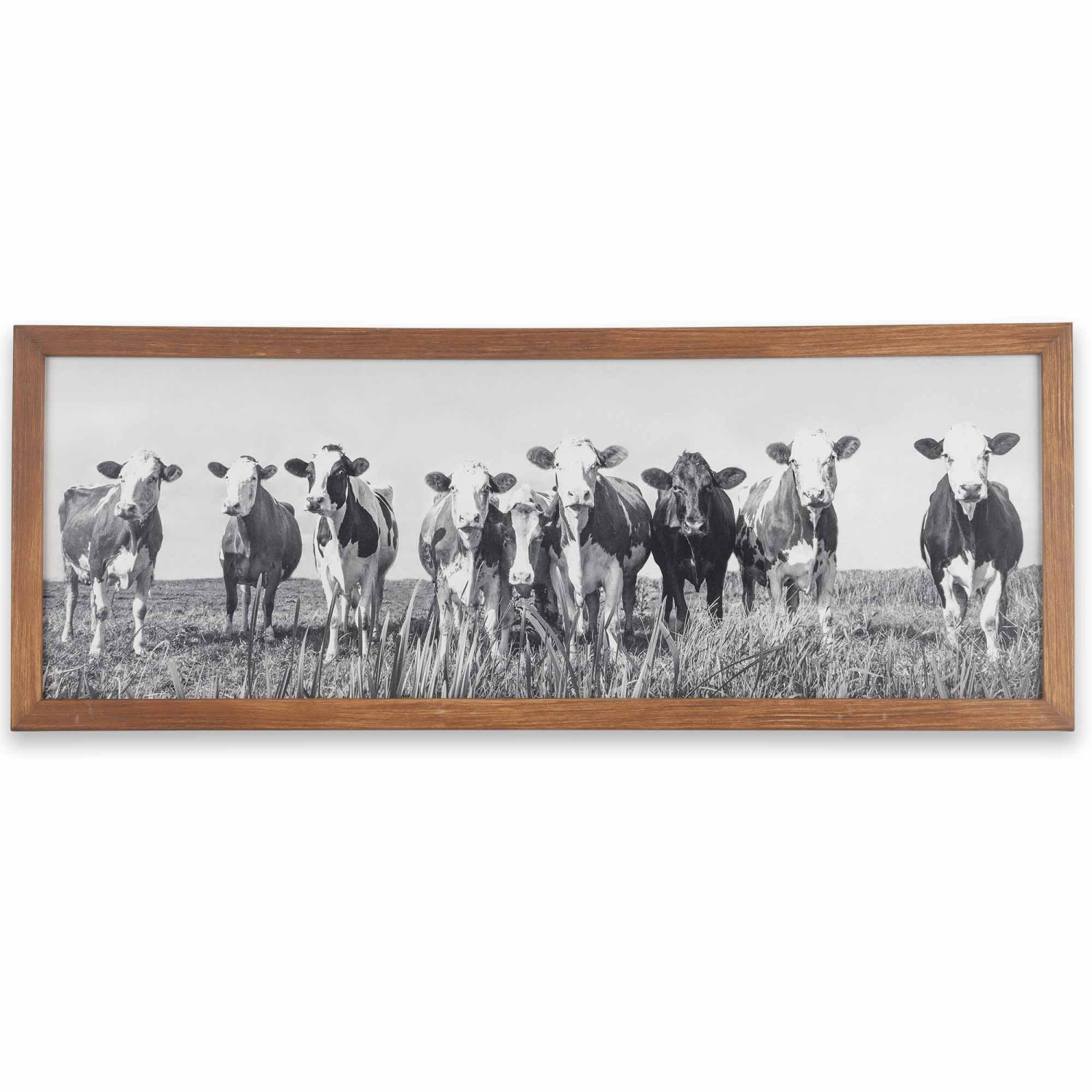 Journey through a tranquil field of cattle and contemplate the beauty of their presence with this rustic wall decor. A monochrome palette lends a classic and refined ambiance to the scene, highlightin…