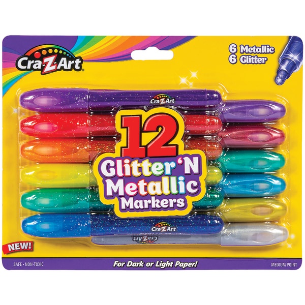 Cra-Z-Art Glitter 'N Metallic Markers, Assorted Colors, Pack Of 12 Markers