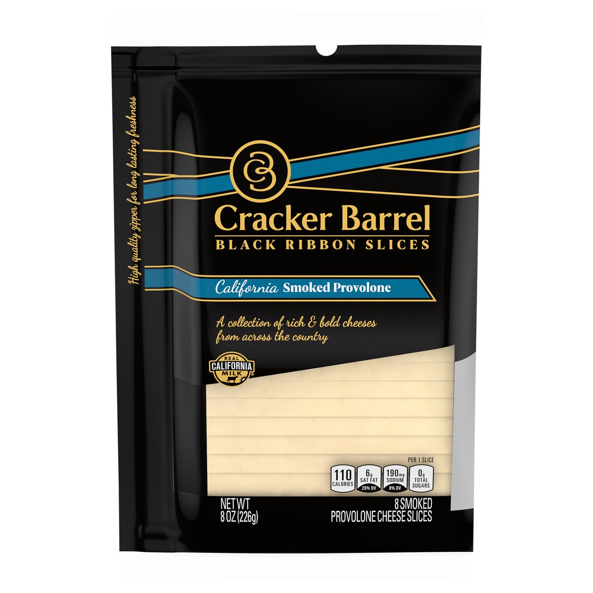 Cracker Barrel Black Ribbon California Smoked Provolone Cheese Slices are part of our collection of rich and bold cheeses sourced from different regions of the US. These Cracker Barrel Provolone Chees…