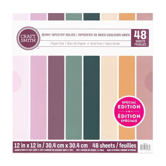 Shop for this Craft Smith 12" x 12" Berry Tapestry Solids Paper Pad at Michaels. Featuring a mix of berry-toned fall solids, these sheets are perfect for scrapbooks, cardmaking, and other papercrafts.…