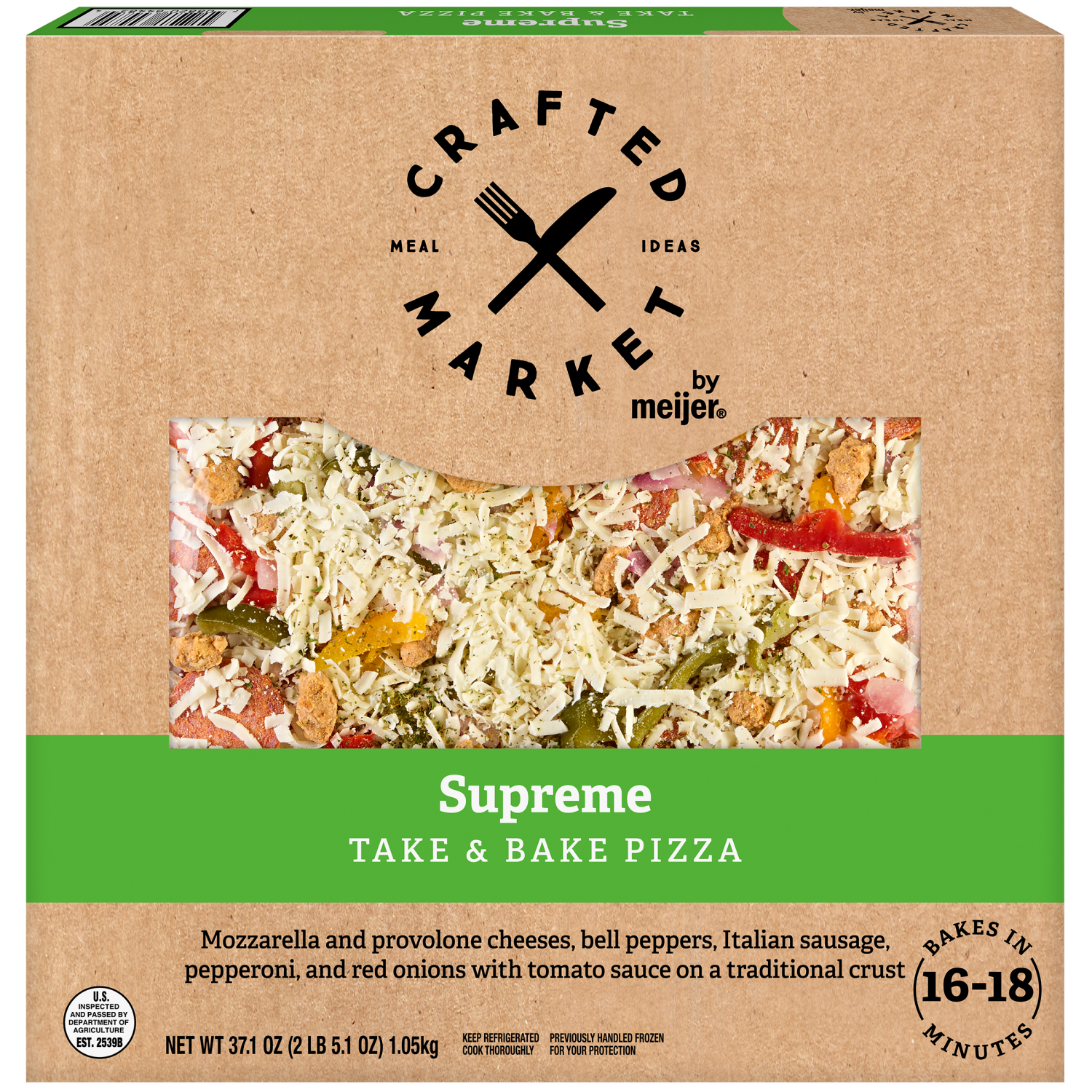 Enjoy the authentic taste of Crafted Market by Meijer Supreme Take & Bake Pizza. Loaded with mozzarella and provolone cheeses, bell peppers, Italian sausage, pepperoni, and red onions, all layered on …