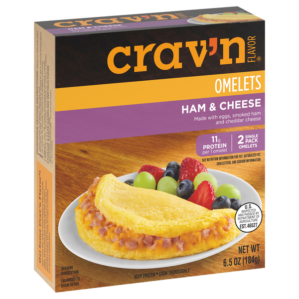 11 g protein per 1 omelet. See nutrition information for sat, saturated fat, cholesterol and sodium information. 2 single pack omelets. Get Some Crav'n Flavor! Start your day with a mouthwater'n bite …