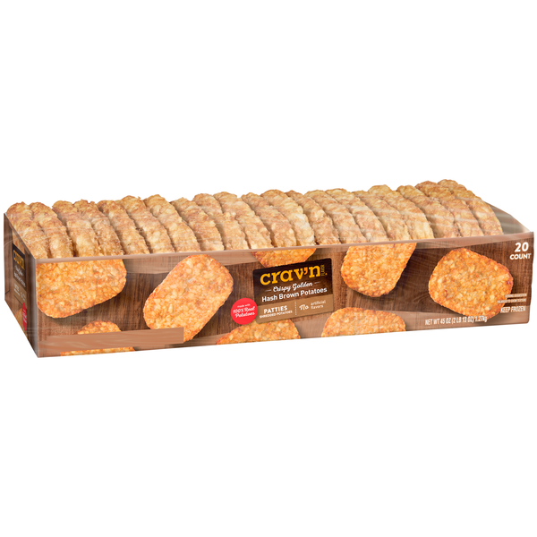 slide 1 of 1, Crav'n Flavor Patties Crispy Golden Hash Brown Potatoes 20 ea, 45 oz