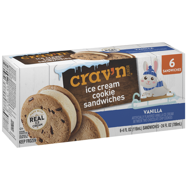 Crav'n Flavor Vanilla Ice Cream Cookie Sandwiches 6 ea