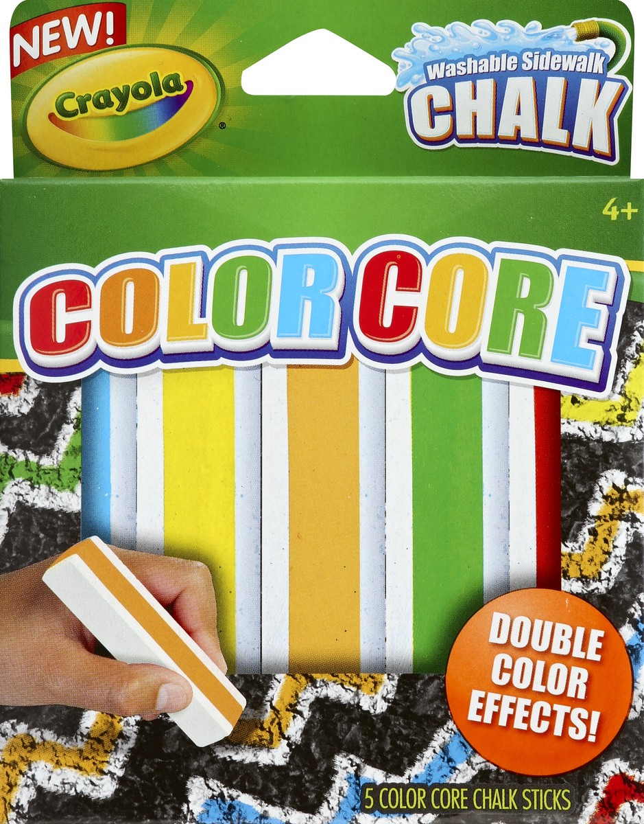 5 color core chalk sticks. New! Double color effects! Don't judge these chalk sticks by their cover - it's what's inside that counts! Each stick has a bright\, bold\, Crayola color core that makes coo…