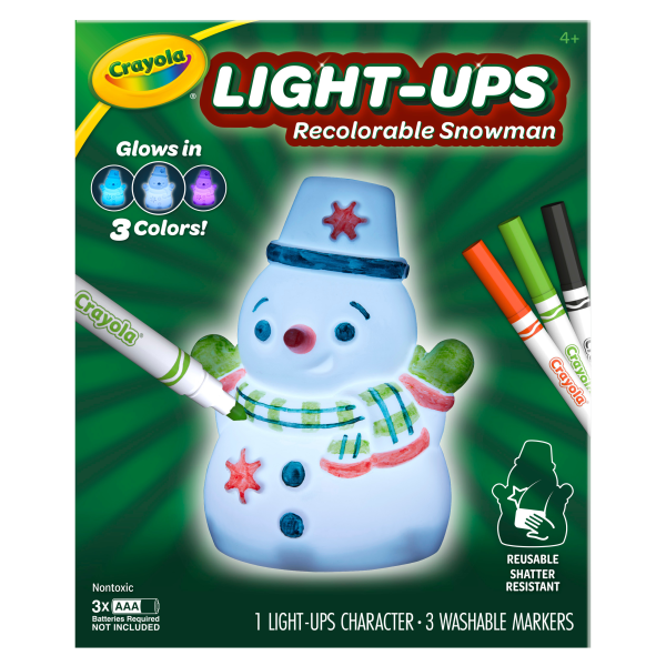Brighten up the holidays with the recolorable Light Ups Snowman from Crayola! This all-in-one toy, holiday decoration, and reusable coloring activity, gives kids a new winter tradition to celebrate. F…