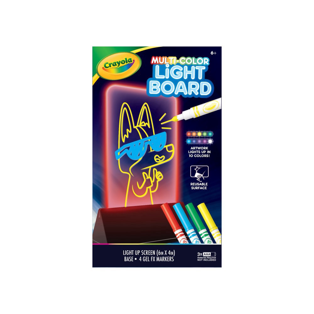 Enhance your creativity with the Crayola Multi-Color Light Board. Choose from 10 different colors to display your artwork. Includes a light-up drawing tablet, 1 base, 4 gel FX markers and instructions…