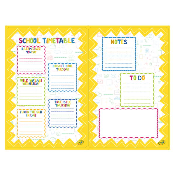 Crayola Peel & Stick Dry-Erase Decals, School Timetable + Memo Sheet, 17-1/2"" x 23-1/2"", Set Of 2 Decals