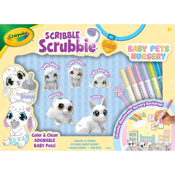 The Scribble Scrubbie Pets just got even more adorable! Meet Baby Pets for the first time in the Nursery Playset! This creative toy for kids features 3 Scribble Scrubbie Baby Pets, 2 Scribble Scrubbie…