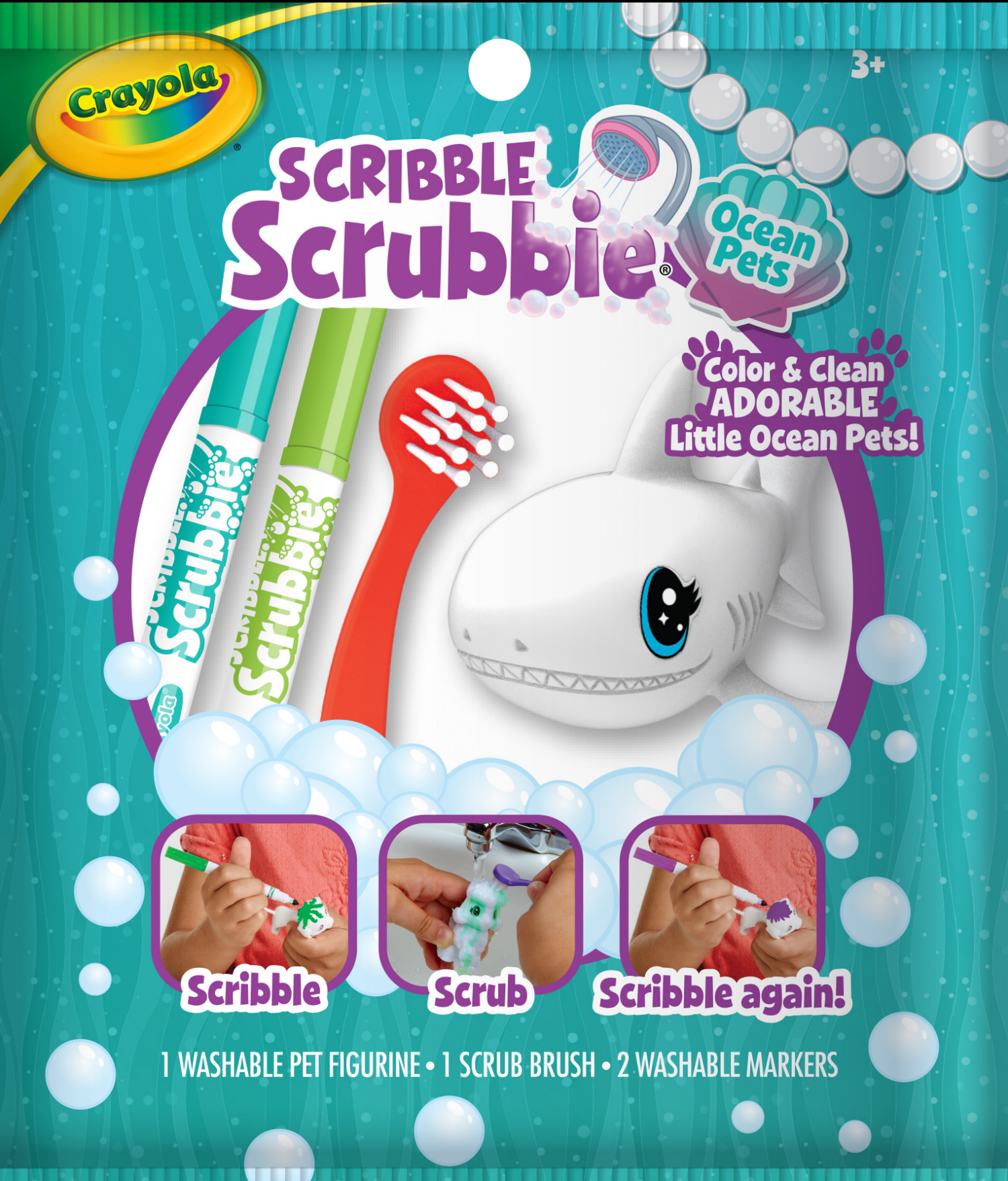 Crayola Scribble Scrubbie Ocean Pets, Color & Wash Creative Toy, Includes Markers