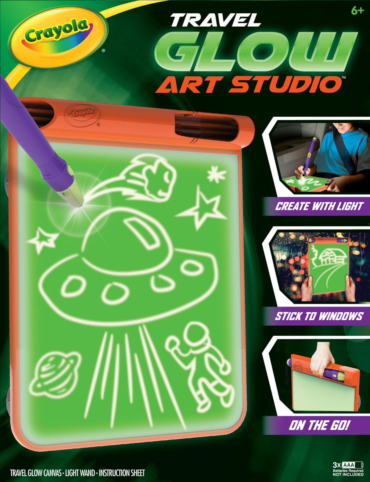 Let children create fun works of art over and over again with the Crayola Travel Glow Art Studio. This art set comes with a light wand, allowing users to draw on the Glow Canvas (included) and watch i…