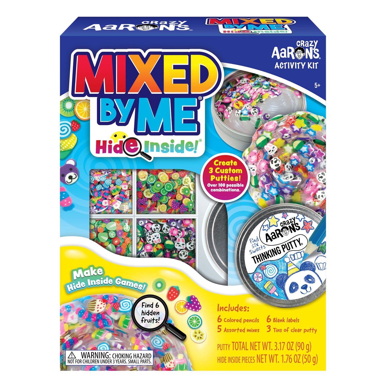 Crazy Aaron's® Mixed by Me® Collection puts the power of creation in the palm of your hands! This awesome Mixed by Me Hide Inside!® activity kit includes 3 clear tins of Thinking Putty®, 5 bags of mix…