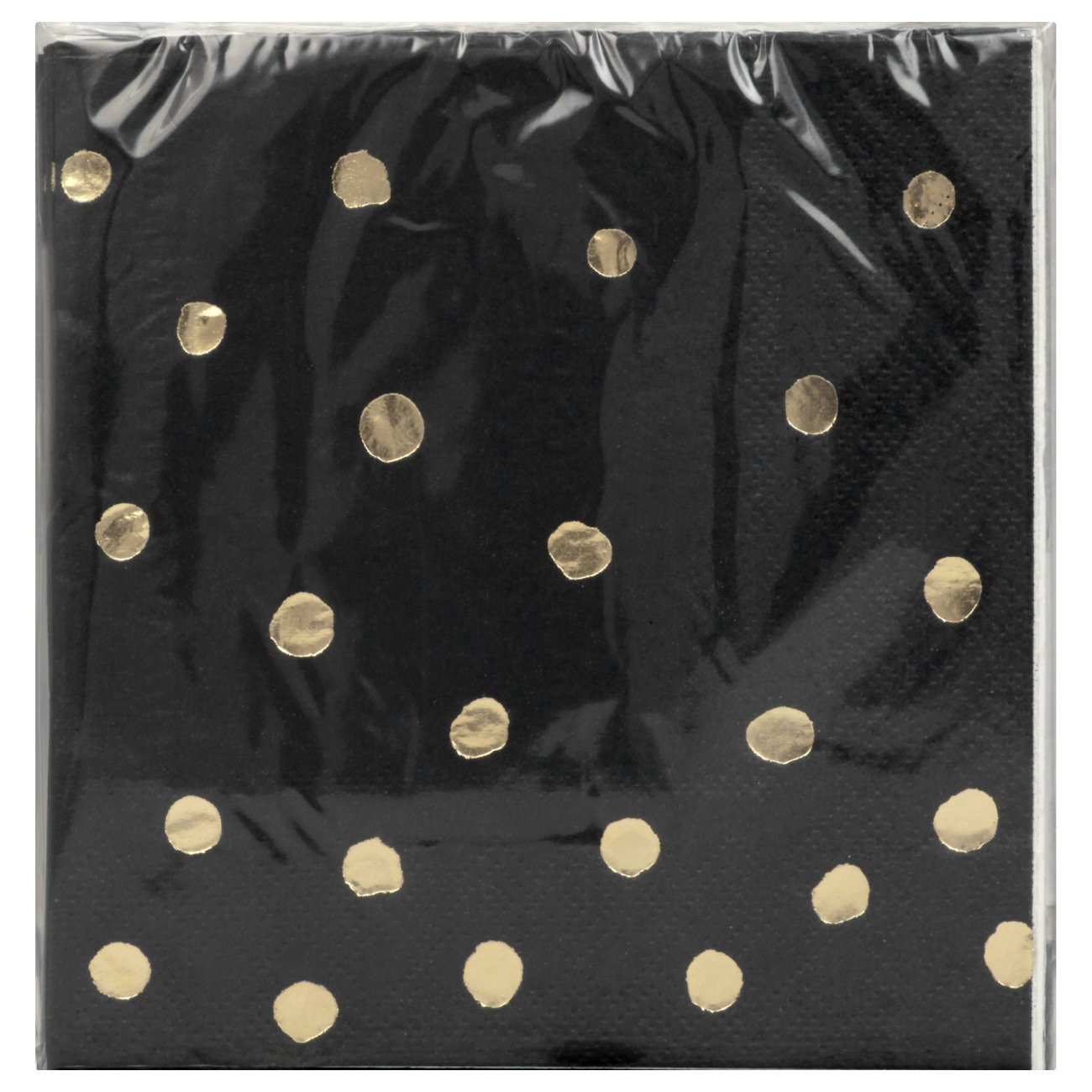 Dazzle your guests with these Black and Gold Foil Dot Beverage Napkins. Covered with a beautiful solid Black with speckled Gold dots, these foil stamped napkins make the perfect addition to any celebr…