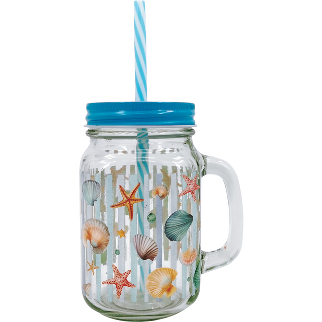 Creative Home Mason Jar With Straw, 17 Oz