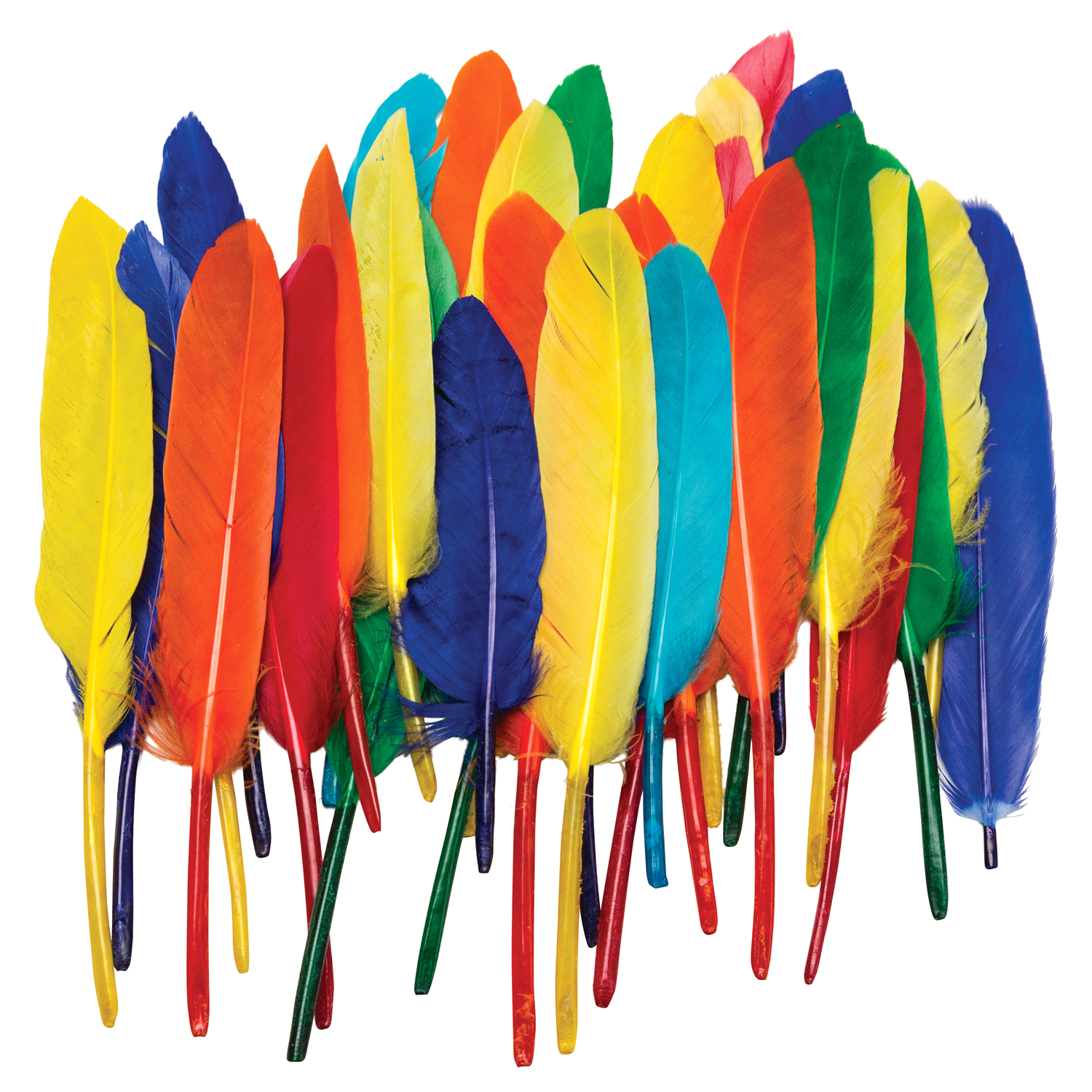Duck quill feathers range in length from 3" to 5", in an assortment of bright colors. These non-toxic feathers are the perfect addition to any arts and crafts project! Glue or tape to masks, collages,…