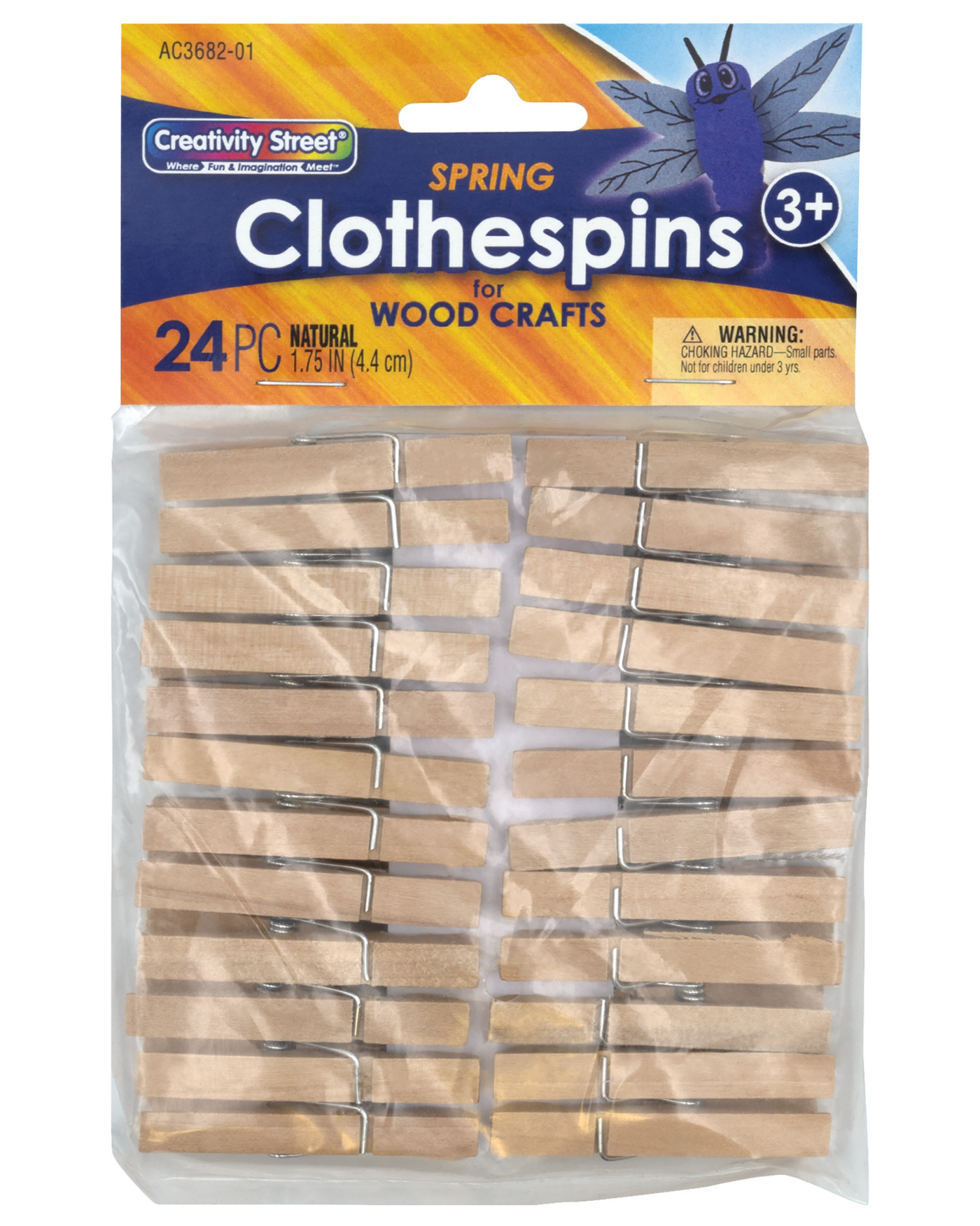 Creativity Street Spring Clothespins, Natural, 1-3/4", 24 Pieces