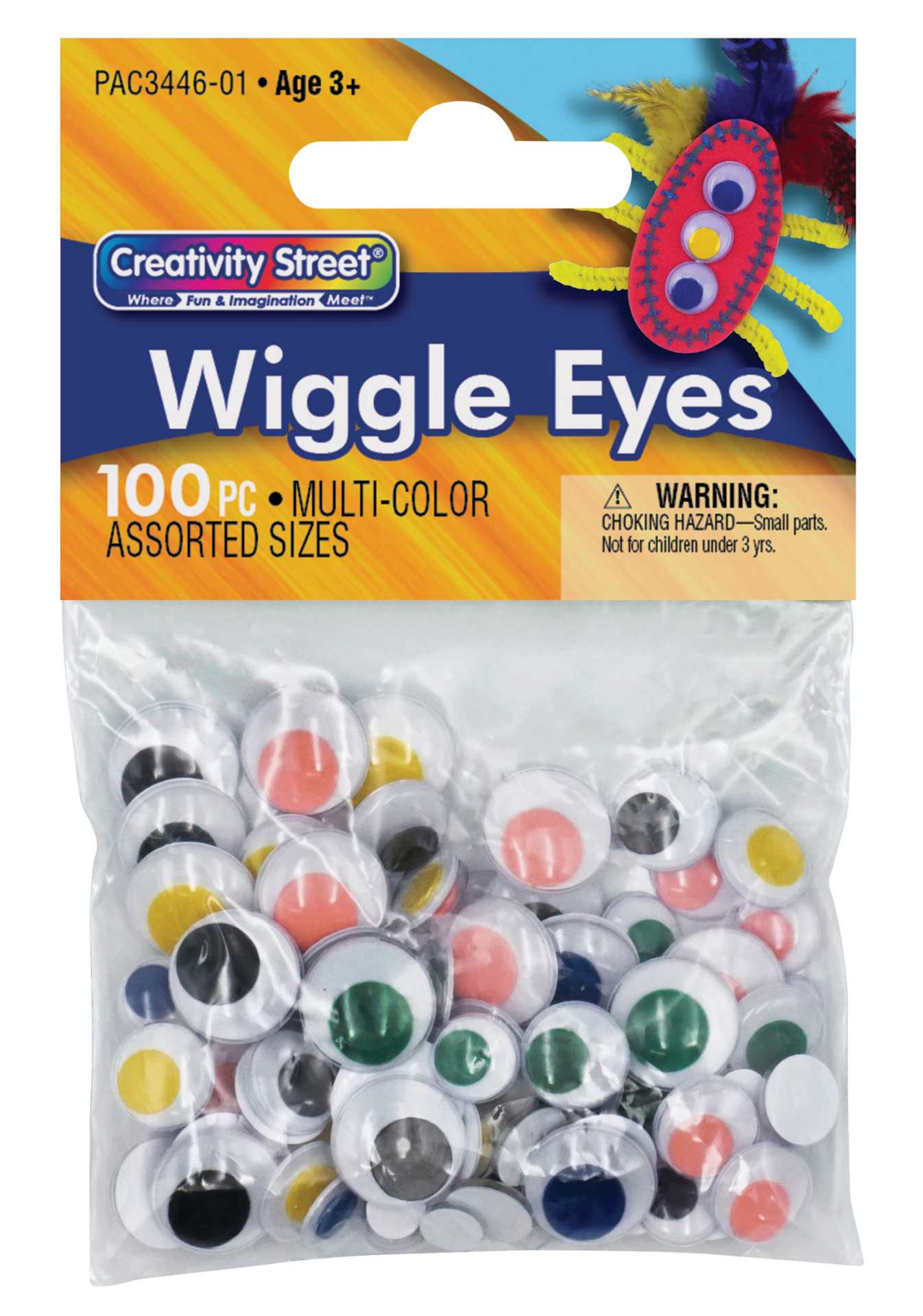 Wiggle Eyes bring projects to life! These multi-color eyes come in an assortment of sizes, and accept several types of glues and tapes to adhere to any project. Sizes include 25 each of 7 mm, 10 mm, 1…