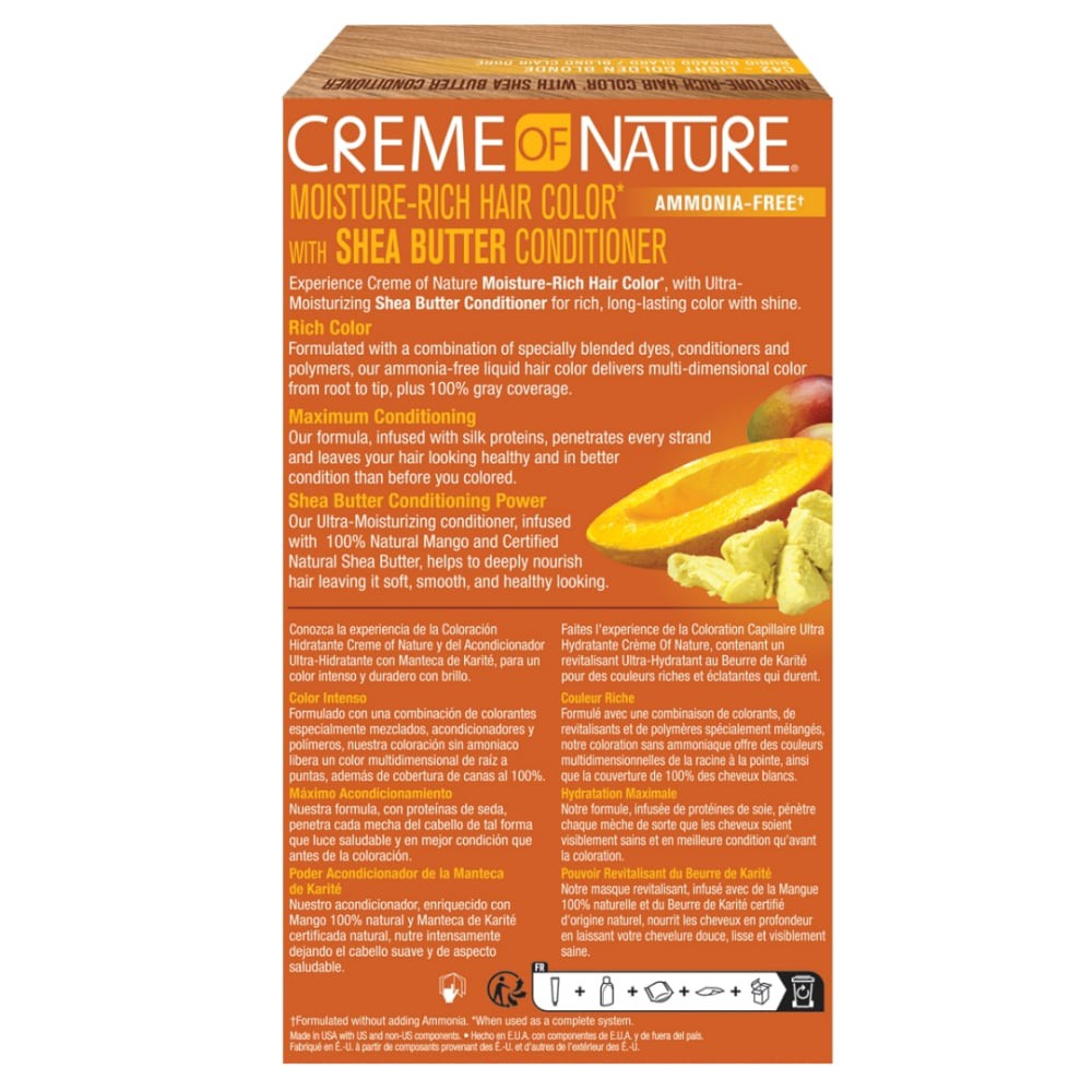 Creme of Natures New Moisture-Rich Hair Color with Shea Butter conditioner is Ammonia-Free and provides 100% Grey Coverage. This liquid Permanent Hair Color provides rich long-lasting color with shin…