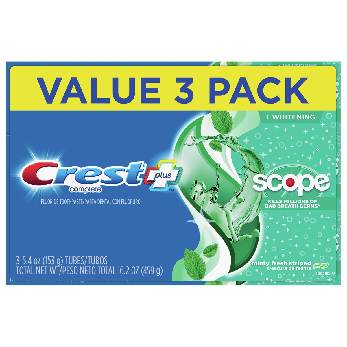 Crest + Scope Complete Whitening Toothpaste, Minty Fresh, 5.4 oz, Pack of 3