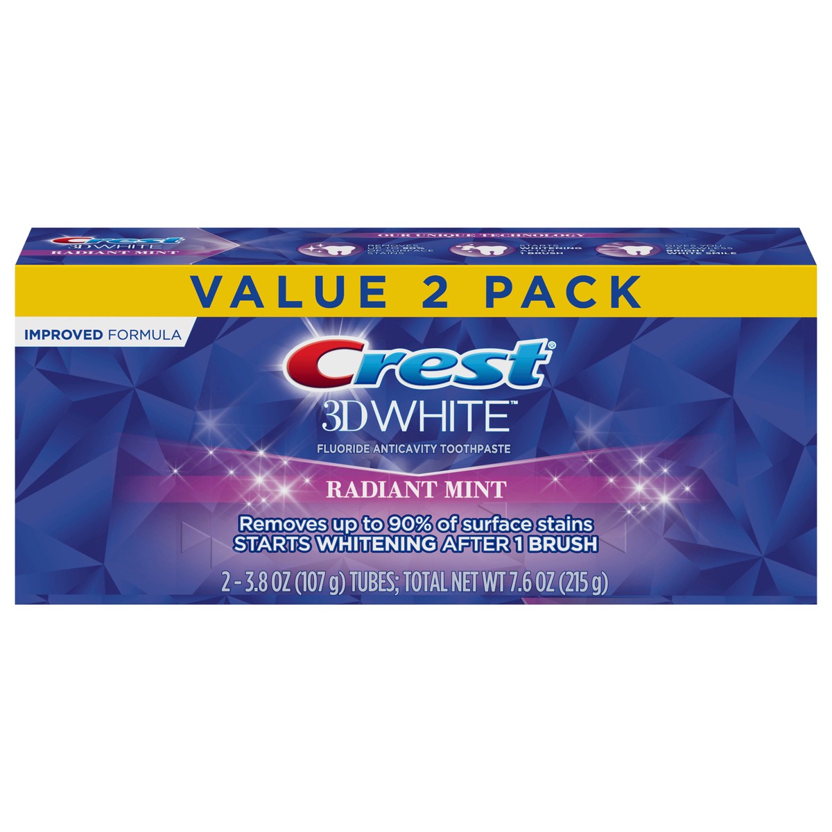 Brighten your smile with Crest 3D White Radiant Mint Whitening Toothpaste. The New and Improved Formula removes up to 90% of surface stains, protects against future stains & starts whitening your tee…