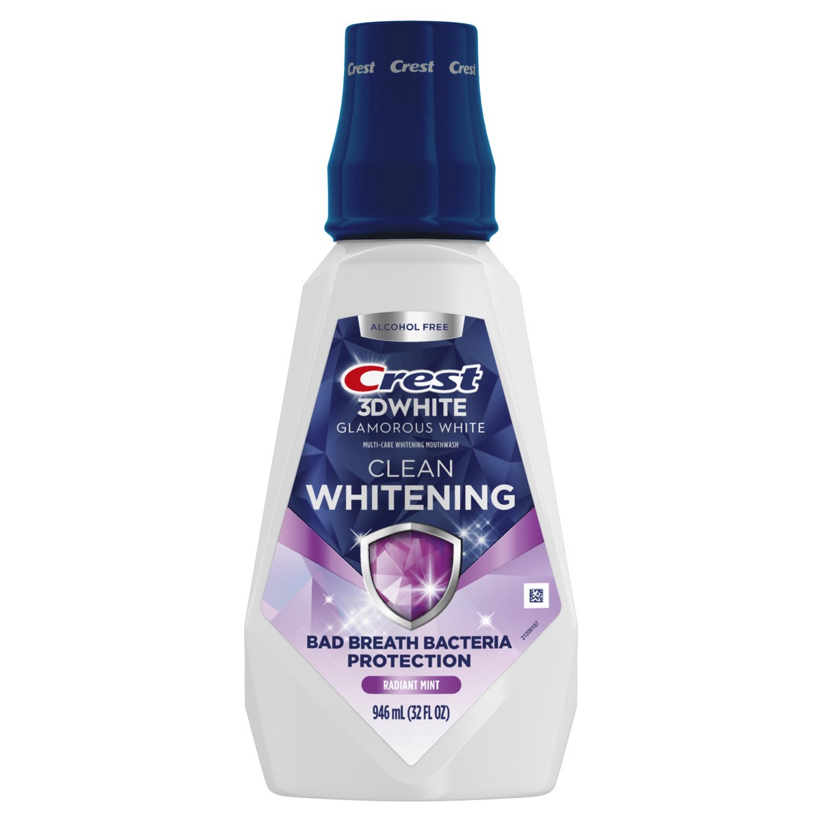 Crest 3D White Clean Whitening MouthwashMouth Rinse, Prevents Surface Stains, Kills Millions of Bad Breath Germs, Alcohol-Free, Arctic Mint Flavor, 946 mL (32 fl oz)