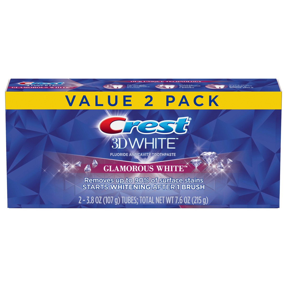 Brighten your smile with Crest 3D White Glamorous White Toothpaste. This formula removes up to 90% of surface stains, protects against future stains & starts whitening your teeth after 1 brush. 3D Wh…