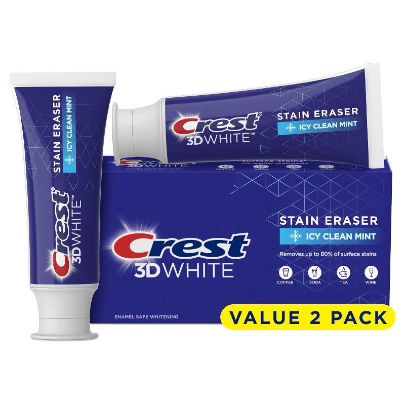 Brighten your smile with Crest 3D White Stain Eraser Toothpaste in Polishing Mint flavor. This Crest toothpaste helps to remove 80% more surface stains* caused by tea, coffee, soda, wine, and other be…
