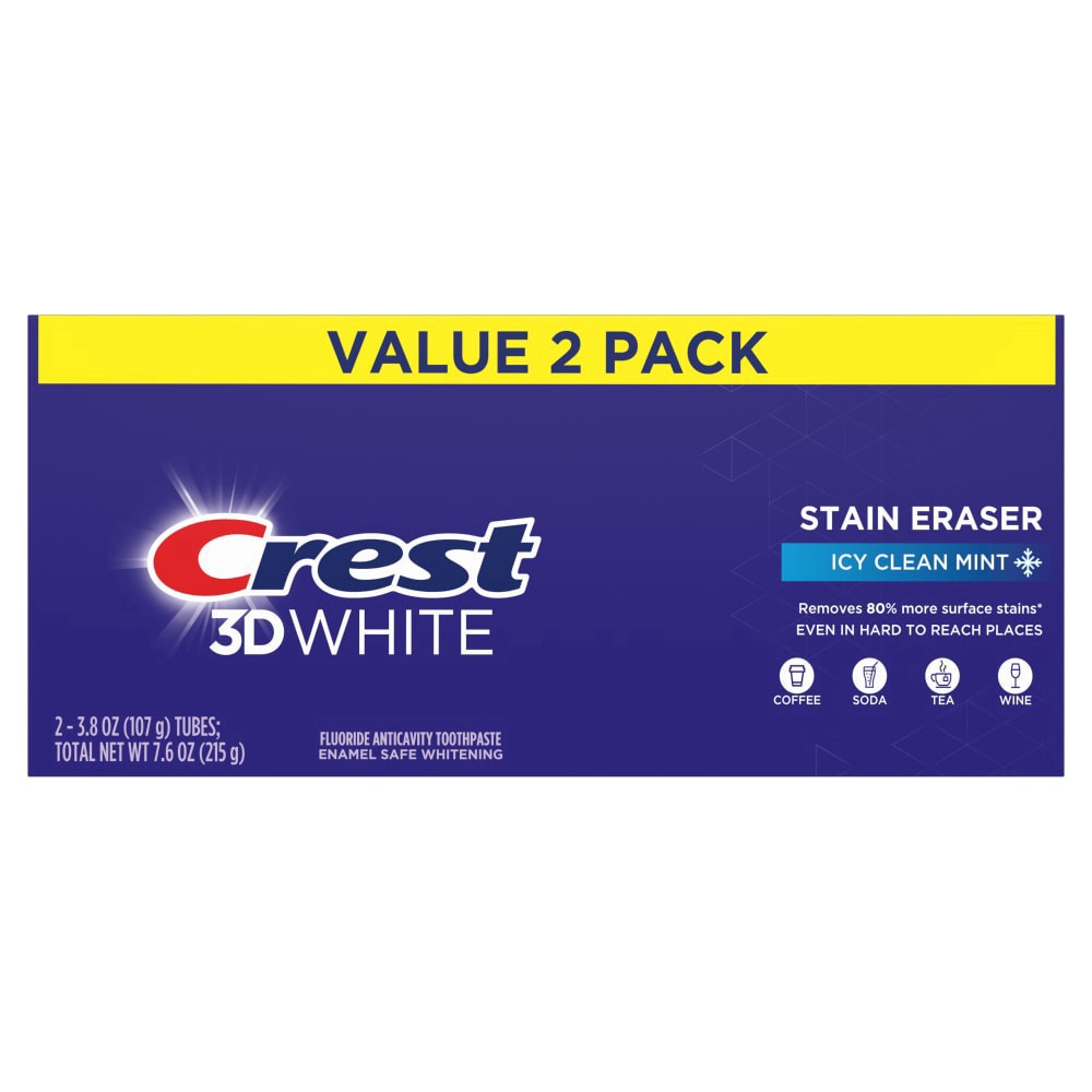 Crest 3D White Stain Eraser Toothpaste Icy Clean Mint - 3.8oz/2pk