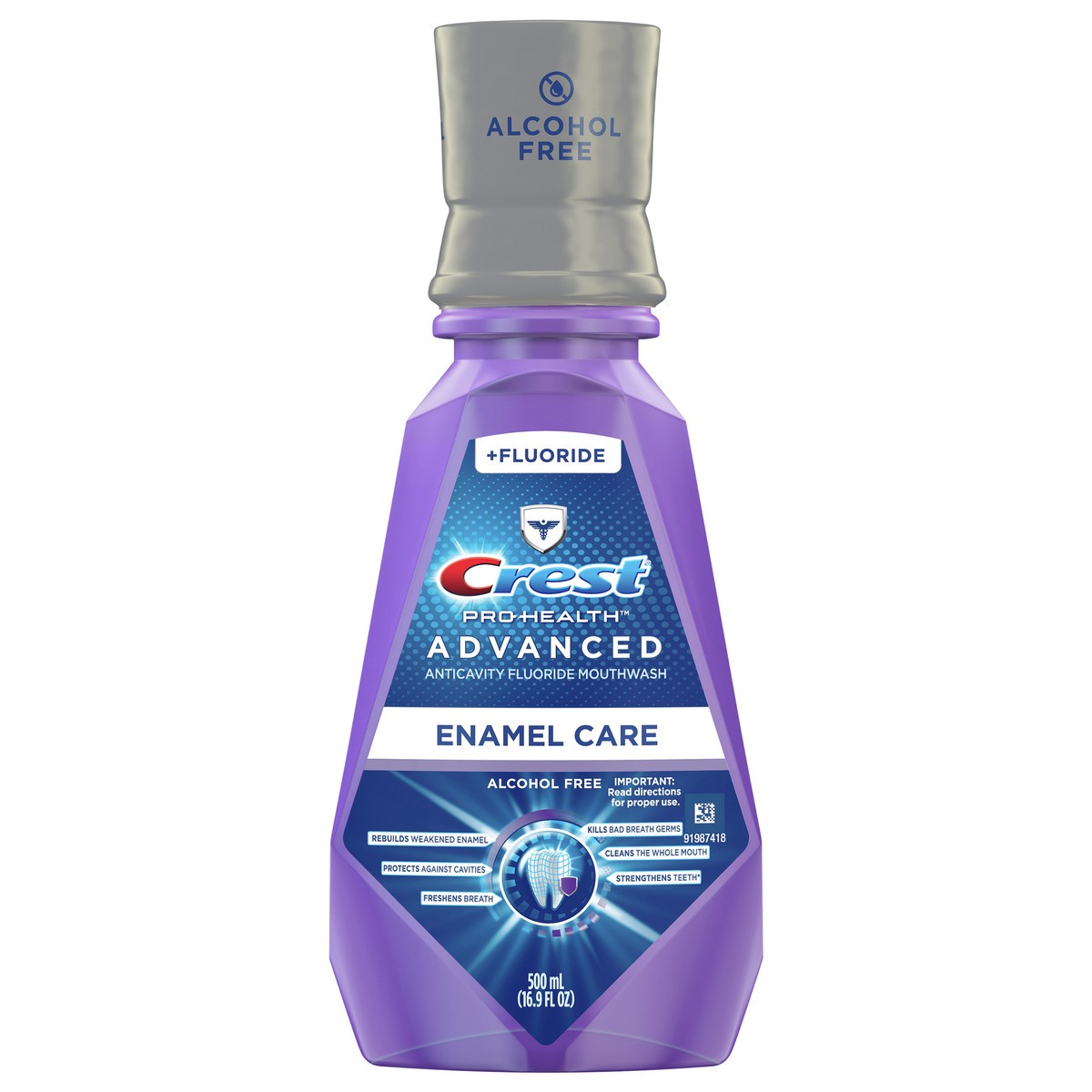 Alcohol free. + fluoride. Rebuilds weakened enamel. Protects against cavities. Freshens breath. Kills bad breath germs. Cleans the whole mouth. Strengthens teeth (when added to a good oral care routin…