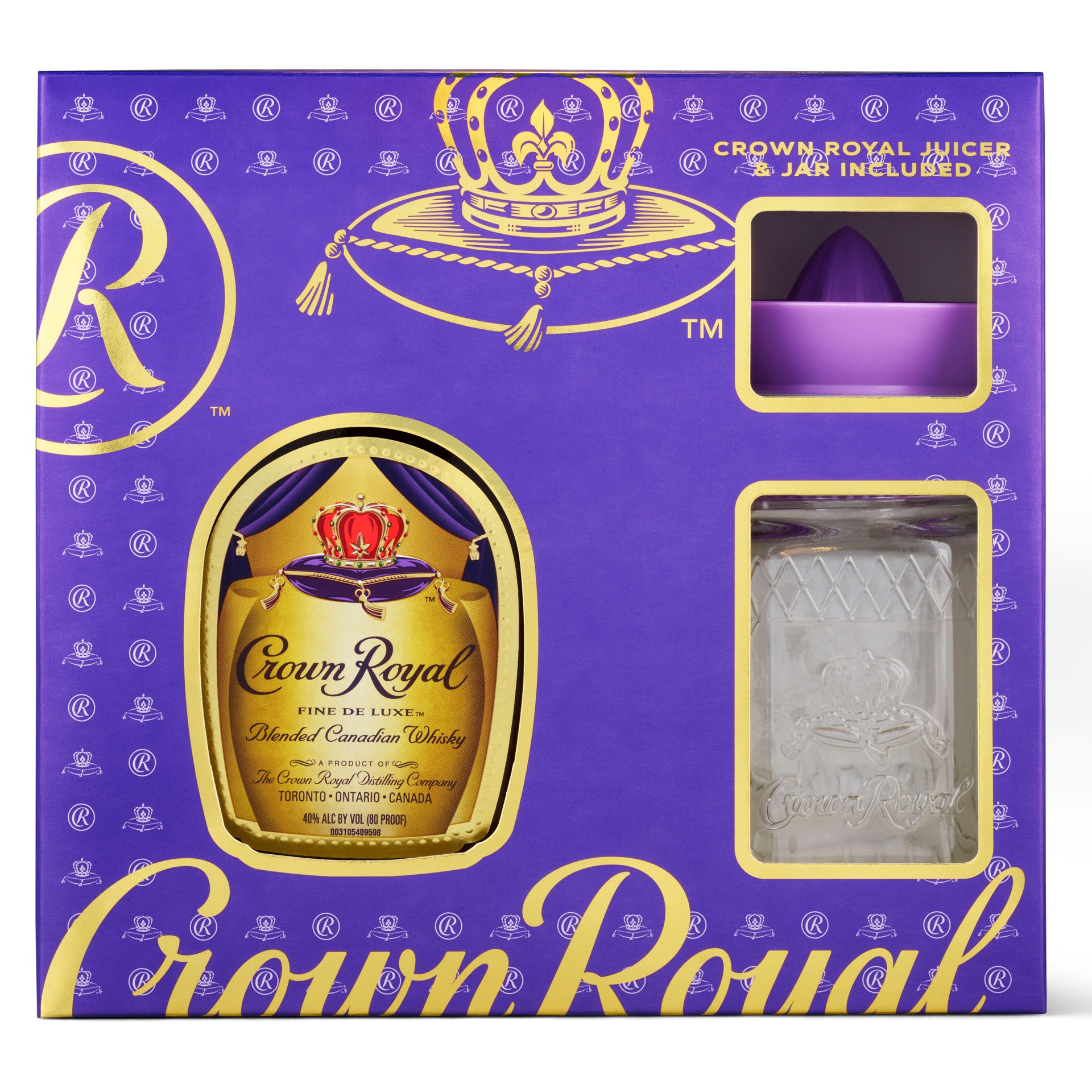 Crown Royal Fine De Luxe Blended Canadian Whisky, 750 mL Bottle with Combo Juicer & Shaker