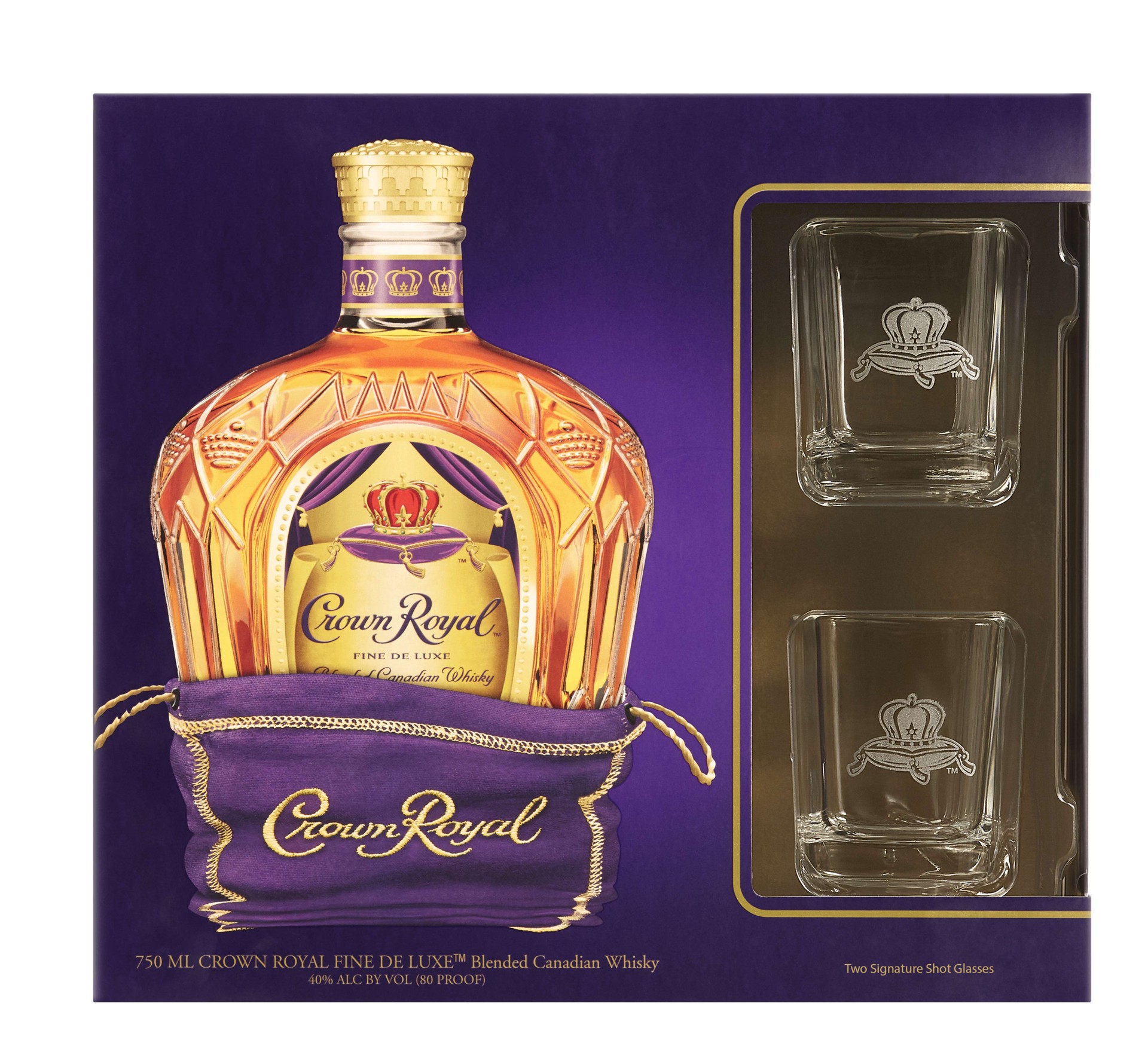 Unwind in luxury with a premium signature shot glass of Crown Royal Fine De Luxe Blended Canadian Whisky. Our rich, robust whisky is packaged with two premium signature shot glasses that are perfect f…