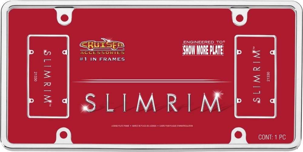 Slim Rim Chrome license plate frame features thin edges for a slim and sleek look. This slim frame is designed to maximize plate visibility Does not obstruct the state name or registration stickers Ma…