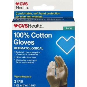 HSA/FSA Eligible. -- Comfortable, soft hand protection for men and women. CVS Health Dermatological Cotton Gloves may be used to hide skin disorders. Helps reduce staining of fabrics and finger marks …