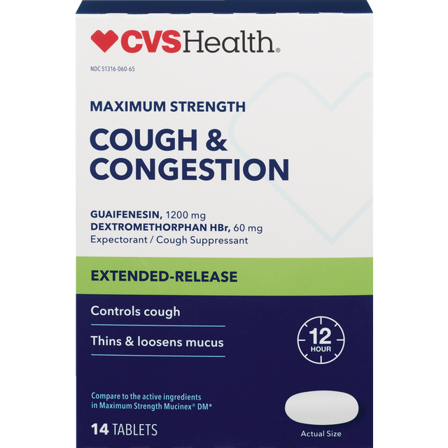 CVS Health 12Hr Maximum Strength Mucus Dm Extended Release Tablets, 14 Ct