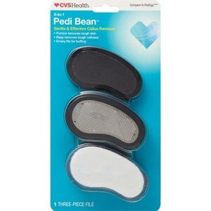 Foot file tool. Gently removes calluses and dead skin. Three different files included in one. Ergonomic design. CVS Health quality. 1 3-piece file. Keep your feet smooth and beautiful with the CVS Hea…
