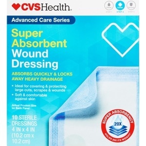 CVS Health Advanced Care Super Absorbant Wound Dressing, 4 In X 4 In, 10 Ct