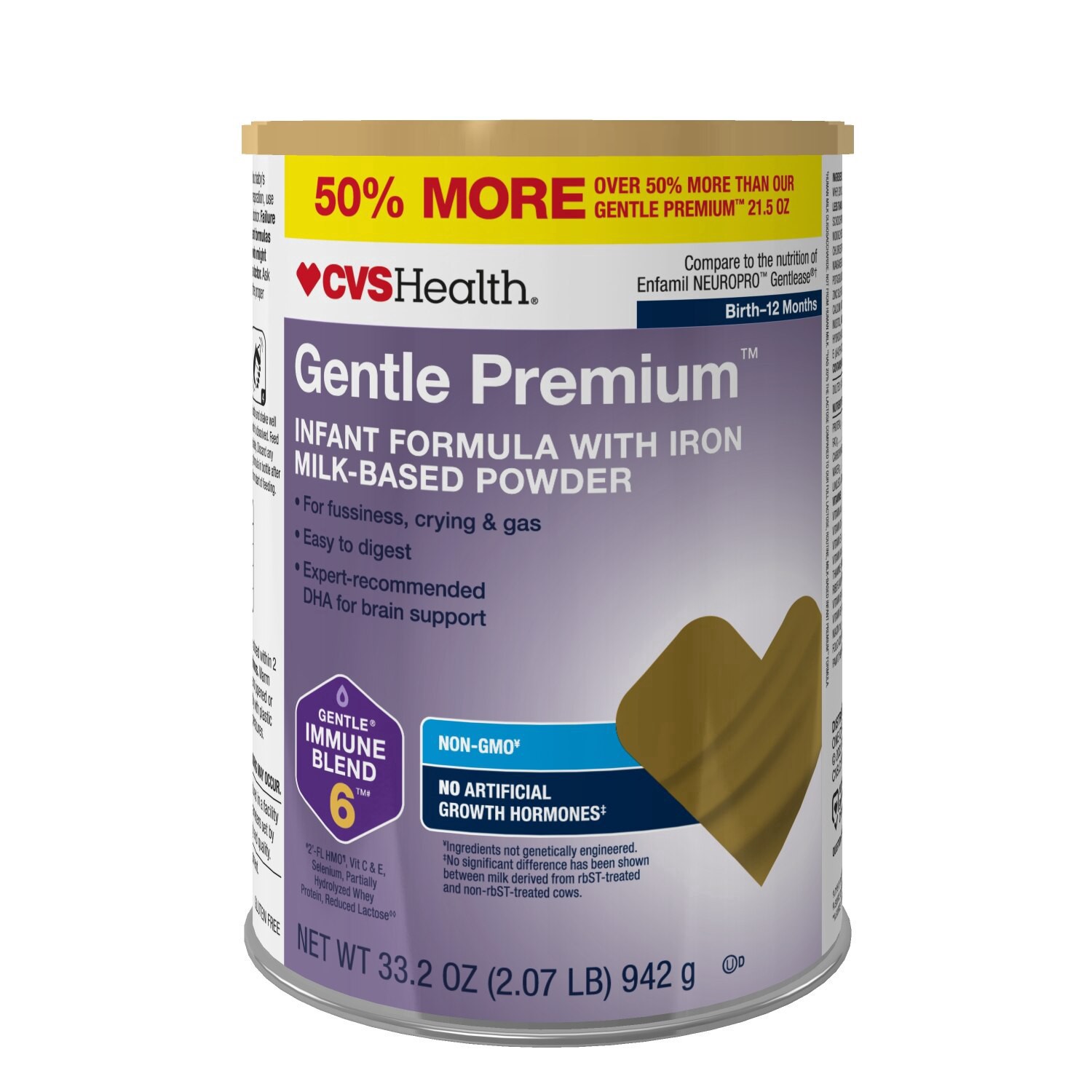 Compare to the nutrition of Enfamil Gentlease. CVS Health Gentle Infant Formula reduces fussiness, gas and crying at feeding time. Easier to digest and gentle on tiny, tender tummies. DHA, vitamins an…
