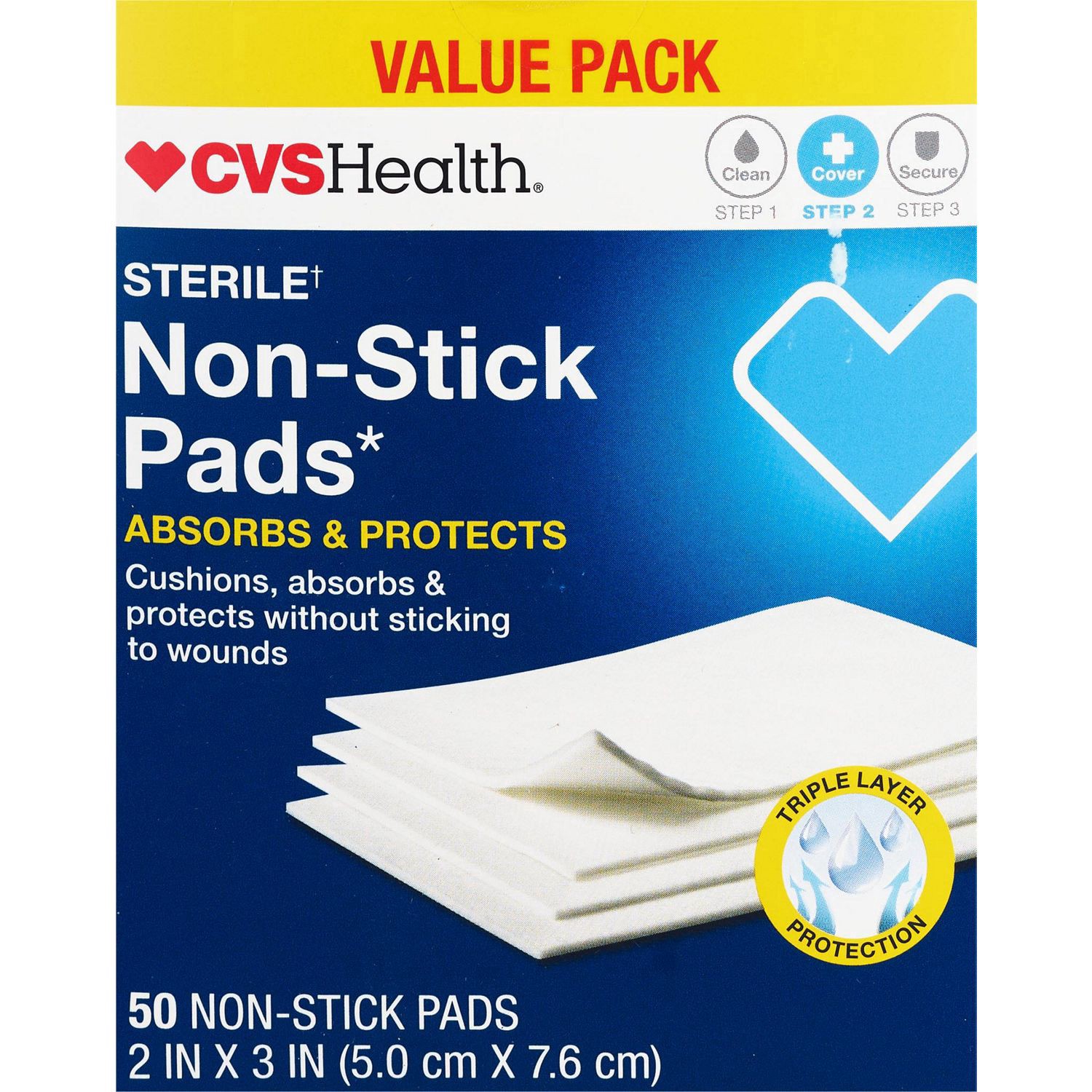 CVS Health Sterileâ Non-Stick Pads* cushion and protect cuts, scrapes and minor burns without sticking.