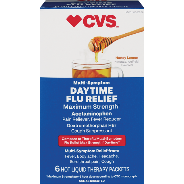 Hot liquid therapy that relieves DAYTIME fever, body ache, headache, sore throat pain, and cough FSA/HSA Eligible Easy to use powder packet, just add to hot water Soothing to the throat
