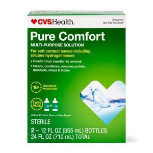 HSA/FSA Eligible. -- CVS Health pure comfort multipurpose solution provides 16+ hours of moisture to soft contact lenses, including silicone hydrogel lenses, comfort from insertion to removal. Its dua…
