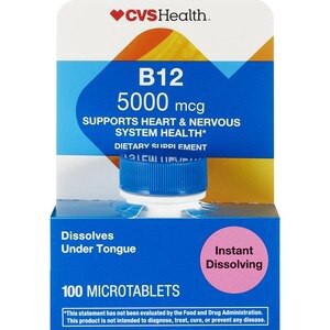 B12 5000 mcg supports heart & nervous system health* Dissolves under Tongue. These instant dissolving tablets may be tiny but they're full-potency supplements. Unlike standard tablets and capsules, th…